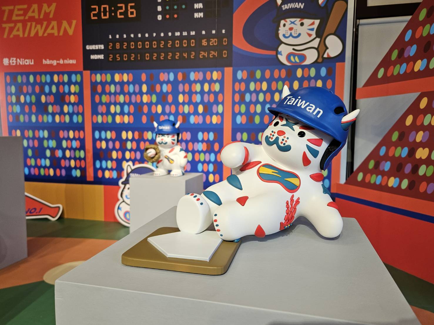 「巷仔Niau」的設計語彙取材自臺南在地文化符碼,包括荷蘭商船意象、孔廟燕尾脊線與鯤鯓海浪紋理等元素,形塑出溫潤親切、貼近土地的城市氣質。本次特展透過場景建構與故事鋪陳,讓角色穿梭於巷弄日常與熱血球場之間,每一幕皆映照城市生活片段與集體記憶。棒球在此不僅是競技運動,更象徵人與土地之間的連結與情感凝聚。展場特別規劃手拿牌道具及拍照互動區,邀請民眾與巷仔Niau同框合影,無論是定格揮棒瞬間的動感畫面,或捕捉角色俏皮神情的溫暖時刻,都讓觀展過程轉化為可帶走的專屬回憶。