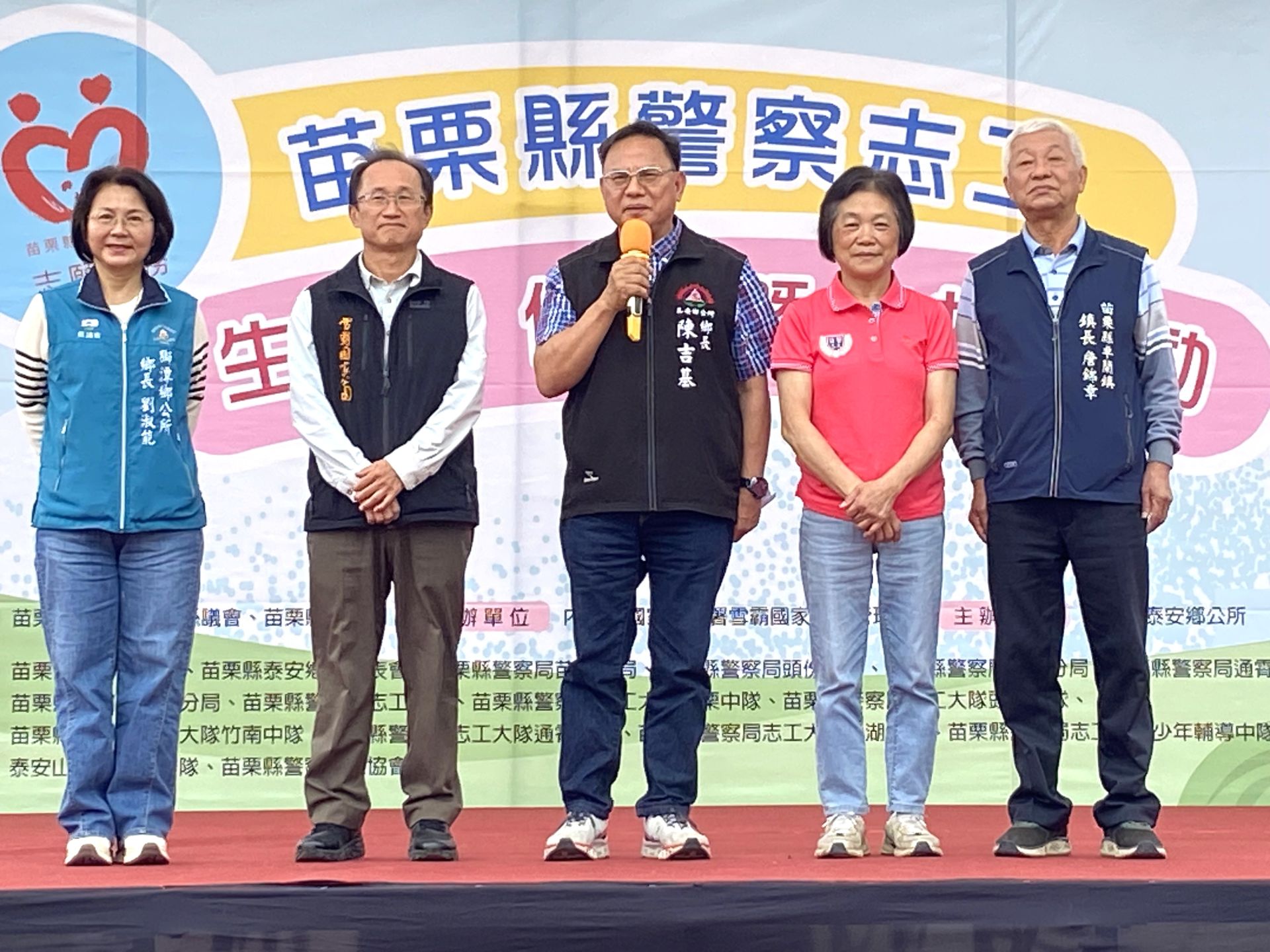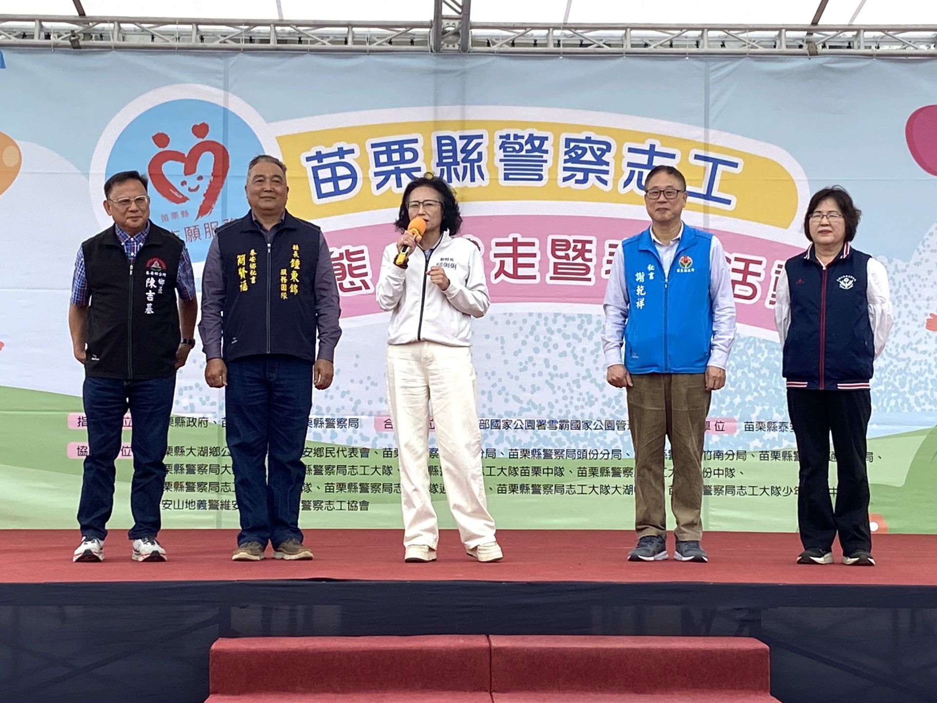 活動一開場即火力全開,由汶水國小舞蹈揭開序幕,接續苗栗中隊廣場舞、竹南中隊話劇結合防詐宣導、頭份中隊動感舞蹈輪番上陣,精彩演出讓現場掌聲與笑聲不斷,宛如一場山林嘉年華。本次活動貴賓雲集,包括副縣長邱俐俐、內政部國家公園署雪霸國家公園管理處處長林文和、苗栗縣警察局副局長傅孟煒、苗栗縣警察局志工大隊大隊長張淑芬、苗栗縣警察局志工大隊小隊長鄭碧玉、苗栗縣警察志工協會理事長梁嬌雪,以及大湖鄉鄉長黃惠琴、泰安鄉鄉長陳吉基、獅潭鄉鄉長劉淑能、卓蘭鎮鎮長詹錦章等各界首長、民意代表到場共襄盛舉,場面隆重。