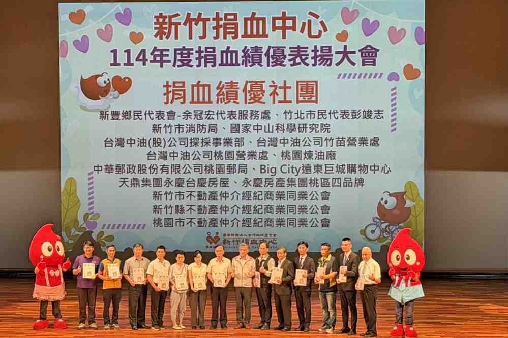 ▲新竹捐血中心在中央大學大禮堂隆重舉辦「114年度捐血績優表揚大會」,表揚桃園郵局等捐血績優社團。(圖/新竹捐血中心提供)