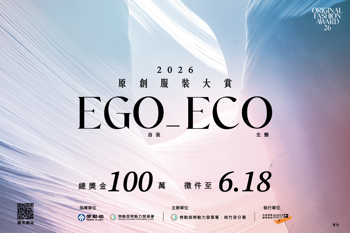 為協助新興服裝品牌接軌市場並提升設計能量,勞動部勞動力發展署桃竹苗分署「衣啟飛翔創客基地」辦理「2026原創服裝大賞」徵件活動,即日起正式開放報名;這屆競賽以「EGO-ECO」為主題,強調設計從「自我風格」走向「環境責任」,鼓勵設計師在展現個人創意與品牌特色的同時,也能將永續理念融入設計之中,讓作品不僅好看,更兼顧對環境的友善與資源循環的思維。