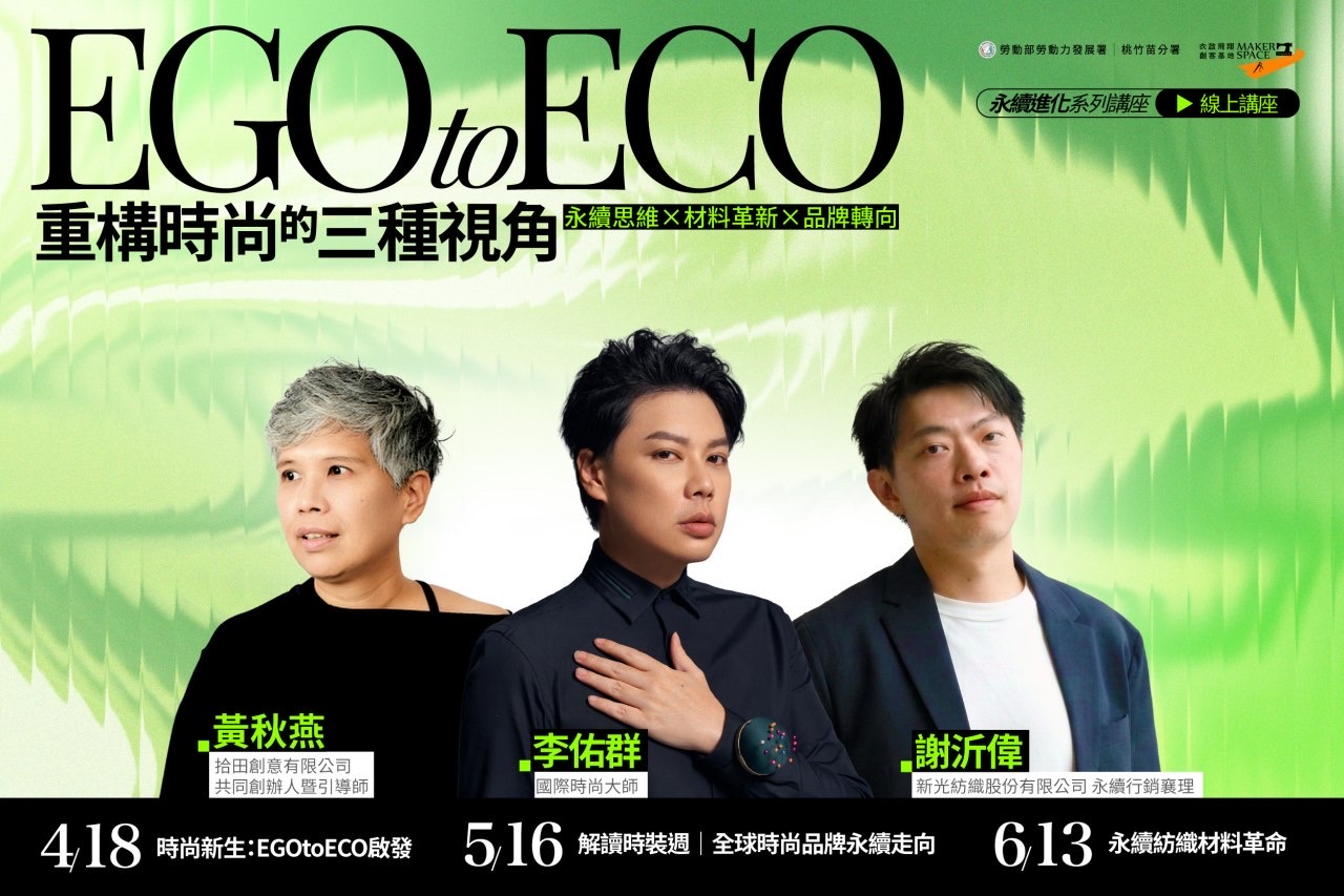 桃竹苗分署表示,為推廣「EGO - ECO」永續議題、協助設計師接軌國際時尚產業趨勢,並為後續徵件活動及2026原創服裝大賞暖身,「衣啟飛翔創客基地」辦理系列講座,4月邀請拾田創意有限公司共同創辦人-黃秋燕講解「EGO - ECO」定義及精神、5月邀請時尚專家-李祐群解讀「全球時尚品牌永續走向」、6月邀請到新光紡織永續行銷襄理-謝沂偉分享「永續紡織材料革命」,相關活動及課程資訊可至「衣啟飛翔創客基地」臉書專頁( https://www.facebook.com/FashionDesignMakerSpace/?locale=zh_TW )查詢及報名,或電洽03-533-5055。
