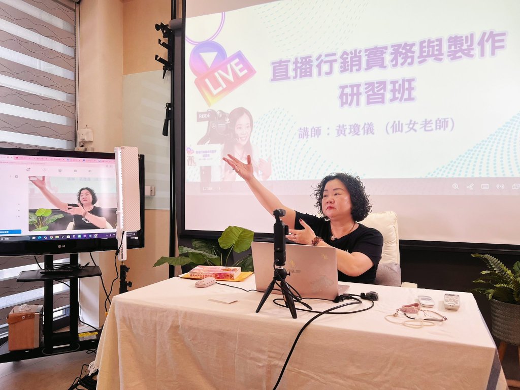 攝影燈亮起,學員們從緊張到笑著對鏡頭說出第一句話。講師帶領大家了解直播平台差異,實際示範拍攝角度、聲音控制與剪輯技巧。