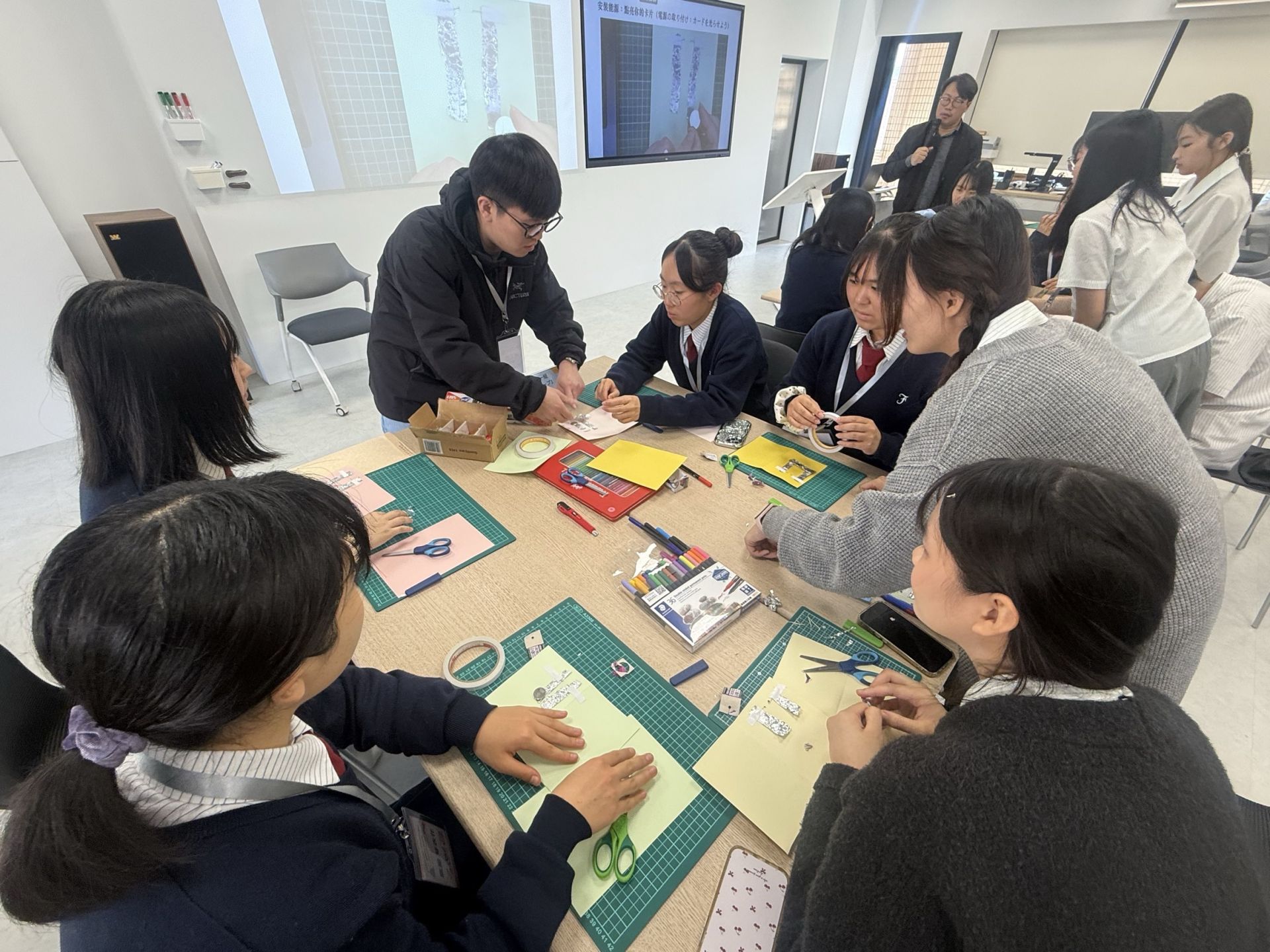 一、台日科學與半導體創意交流實作課程,由謝孟翔組長透過實作,引導學生認識半導體科技,激發跨國科學創意思維。
