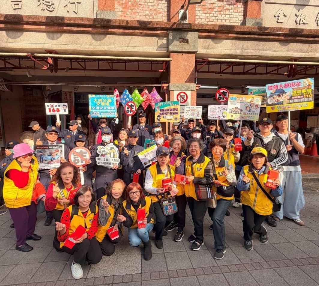 此外,大同分局於2月3日下午3時,在迪化商圈舉辦「犯罪預防及交通宣導遊街活動」,由員警、義警及志工團隊走入人群,發放紅包袋宣導品,透過互動方式向民眾宣導防竊、識詐、護鈔及交通安全觀念;同時段,市長蔣萬安出席迪化街商圈活動,特別與警方同框合體,共同宣導反詐防竊觀念,傳遞「今馬熊讚、安心過年」的正向訊息。