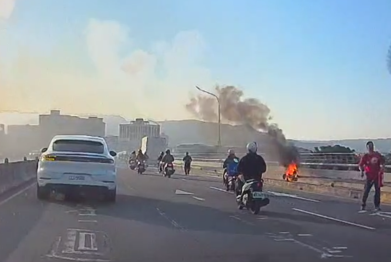 新北市浮洲橋發生電動機車自摔起火火警。翻攝畫面