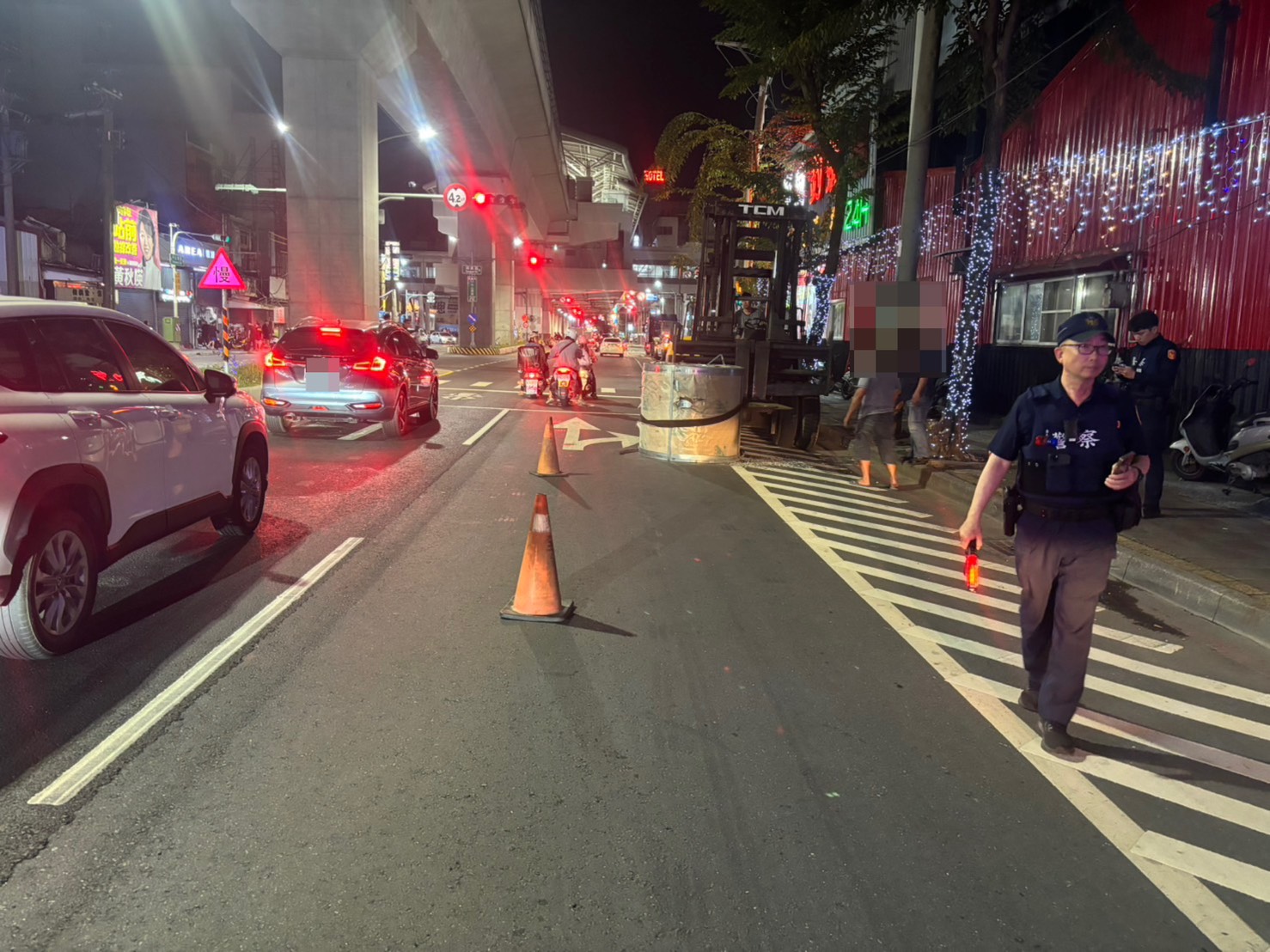 所幸事發當下未與其他車輛或行人發生碰撞,無人受傷,但偌大的鋼捲橫躺在路中央,往來車輛根本無從正常通行。岡山分局接獲通報後立即派員趕赴現場,員警持續指揮疏導,引導用路人繞道行駛,同步緊急聯繫吊車到場,才將這顆「路中巨物」順利清除。