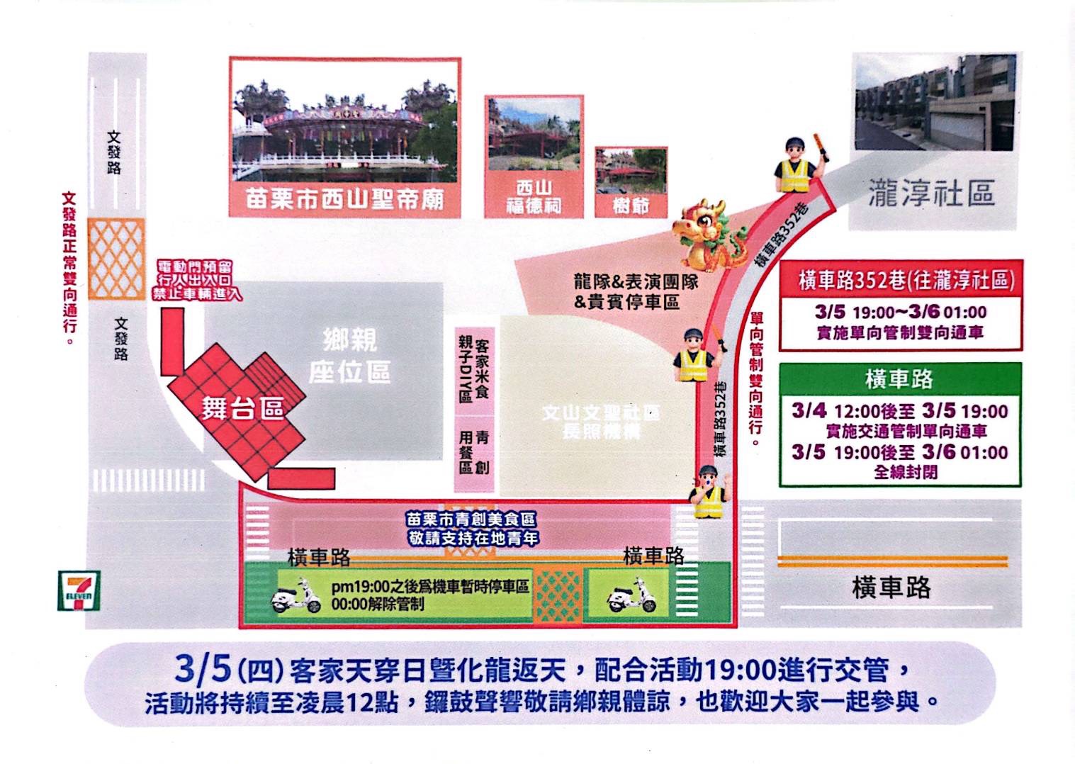 當日下午天穿日活動同樣熱鬧溫馨。傳統客家米食體驗區吸引大小朋友動手製作,體會客家飲食文化的細膩與智慧。舞台節目精彩不斷,草莓老師帶來折氣球互動,僑育國小布馬陣、苗栗國中舞蹈班、逸蘭軒掌中劇團、熾紅核心及優樂合唱團輪番演出,展現在地青年與傳統技藝攜手合作的成果,讓文化薪火在歡笑與掌聲中持續傳承。