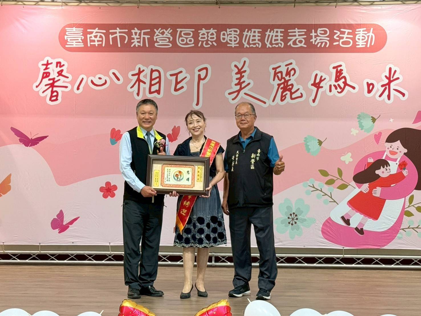 新營區公所於今(25)日在新民文教活動中心舉辦「馨心相印,美麗媽咪」115年母親節表揚大會,由各里推薦模範母親接受表揚,現場氣氛溫馨熱烈。區長陳宏田代表市長黃偉哲頒贈賀匾,表達對母親最誠摯的敬意與祝福,市議員蔡育輝、趙昆原、沈家鳳、王宣貿及多位地方民意代表及里長亦到場共襄盛舉。
