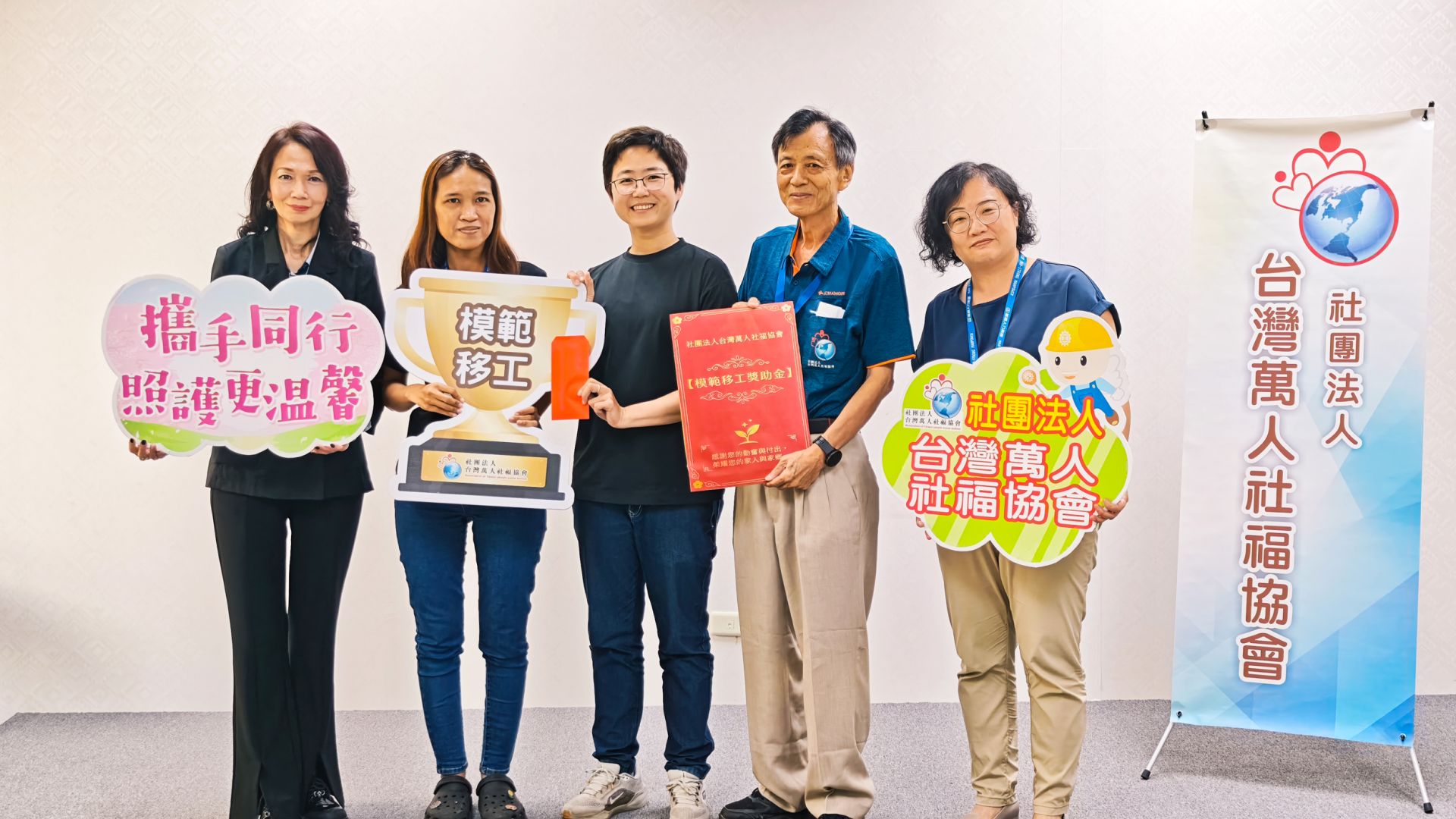 本次表揚活動中,共有6位優秀移工親自到場受獎,皆長期投入家庭照護與長者陪伴工作,並經由萬通人力媒合投入服務,在第一線展現專業、耐心與責任感。她們來自不同地區,卻有著共同的特質——用心照顧、真誠陪伴,成為許多家庭最安心的依靠。