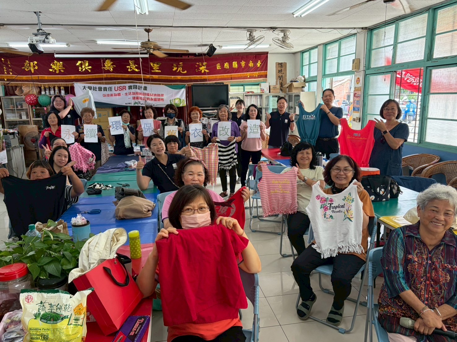 崑山科技大學企業管理系碩士在職專班班學生林岑芳、張承威、李芝渝、許凱莉、郭玉硯,為深入連結社區並推廣減碳綠生活,團隊於4月18日上午,特別選定關廟區深坑里活動中心,舉辦「永續環保・舊衣改造」活動帶領居民運用巧手將家中閒置的舊衣,華麗變身為實用的「環保購物袋」,透過升級再造(Upcycling)賦予舊物全新生命,成功喚起社區對減塑與資源循環的重視。