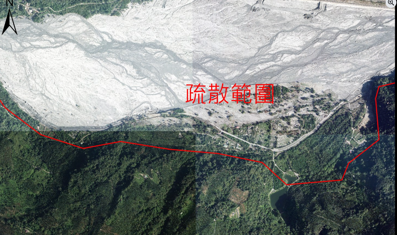 光復鄉公所規劃馬太鞍溪新堰湖溢流疏散範圍。翻攝畫面