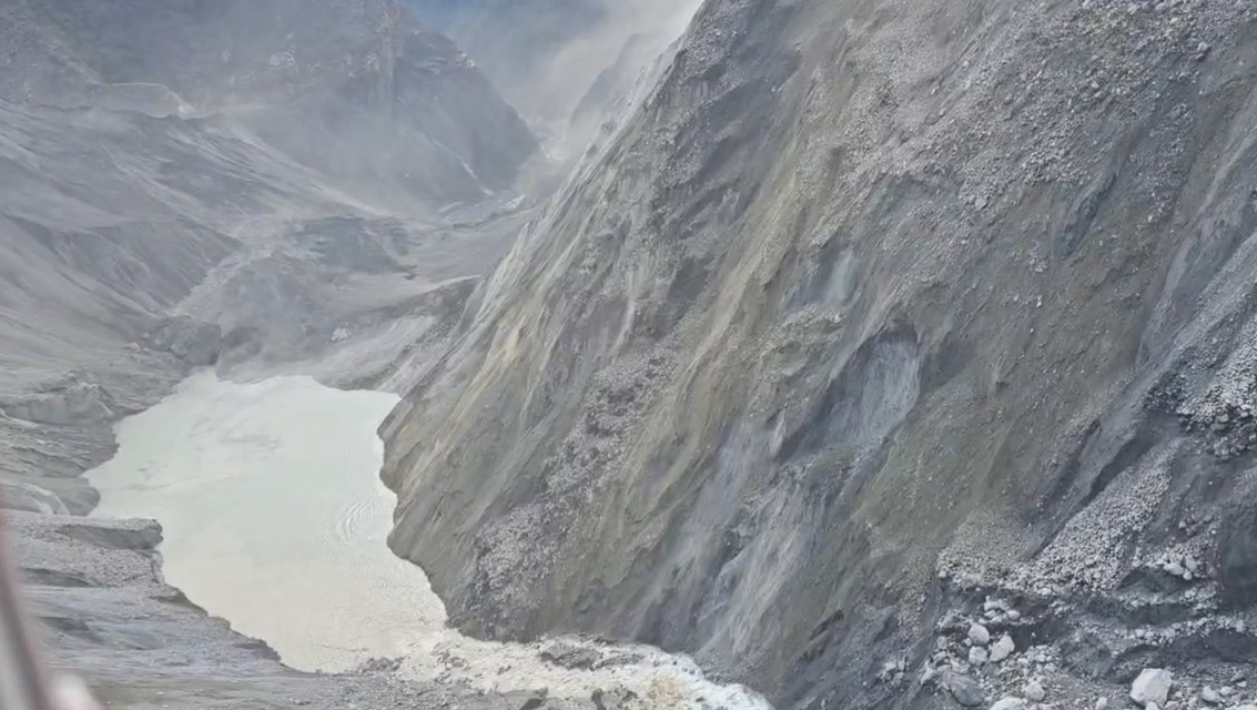 馬太鞍溪新生成的堰塞湖。翻攝畫面