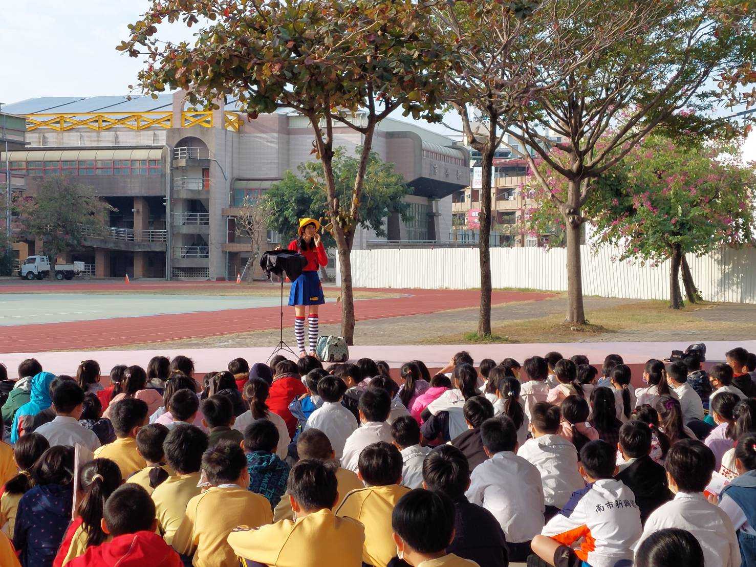 ▲教育局邀請街頭藝人到校表演傳達網路成癮預防與反詐騙知識。(教育局 提供)